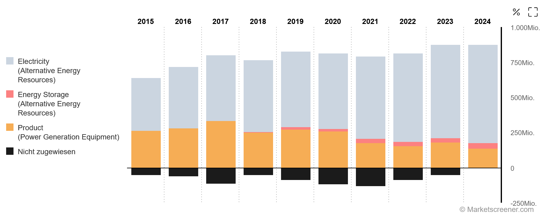 Mit einem Anteil von lediglich 4 Prozent am Gesamtumsatz macht der Geschäftsbereich für Energiespeicherlösungen ein Nischensegment aus. Noch! In jüngster Vergangenheit verzeichnete dieser Bereich Wachstumsraten von über 120 Prozent. Ähnlich wie der Bereich Products ist auch das Segment Energy Storage in zwei Untersparten zu unterteilen: Sowohl physische als auch digitale Produkte prägen das Energiespeicher-Segment, jedoch mit einem essenziellen Unterschied.