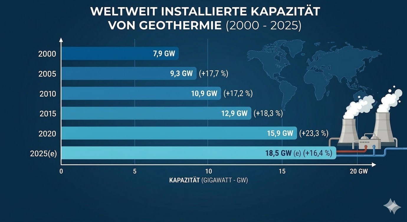 Die Bestrebungen zur Diversifikation scheinen vielversprechend und in Anbetracht der Stagnation im Geothermie-Markt sogar unumgänglich. Zur Erinnerung: Prognosen zufolge soll Geothermie im Jahr 2025 keinerlei Wachstum erfahren haben und über die letzten zehn Jahre blieb der Anteil an Erdwärmekraft im globalen Energiegewinnungssegment konstant bei 0,3 bis 0,4 Prozent der globalen Energiegewinnung.
