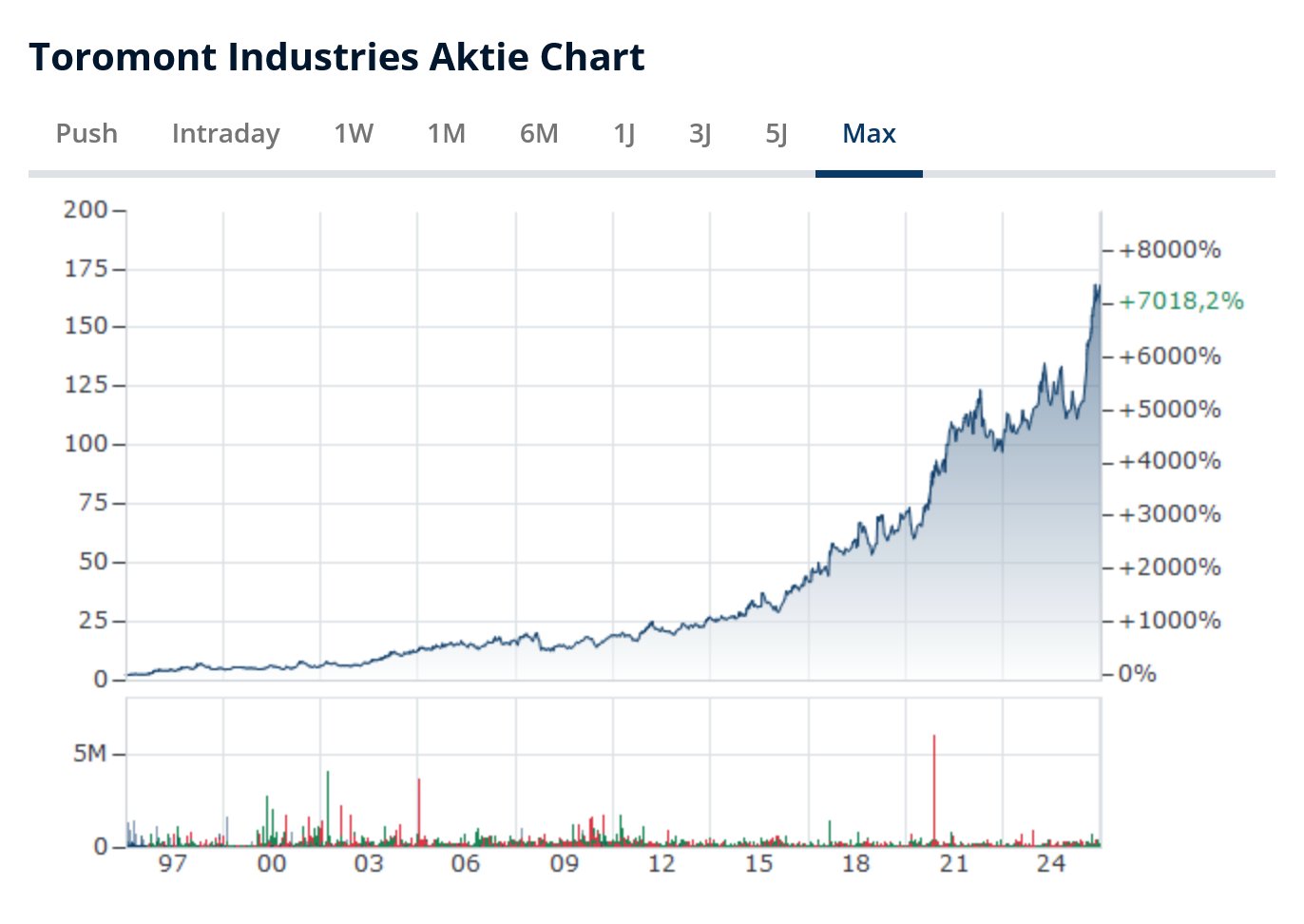 Mit einem Kurszuwachs von über 7.000 Prozent seit dem Börsengang gehört die Toromont Aktie zu den klaren Outperformern – nicht nur im Rohstoffsektor. Aufgrund der jüngsten Kurszuwächse kratzt die Bewertung allerdings an einem historischen Hoch: Das KGV liegt mittlerweile bei über 27. In der Vergangenheit folgten auf solche Bewertungsaufschläge stets Rücksetzer. Die Fundamentaldaten hingegen können mit Ausnahme des mauen Free Cashflows überzeugen. Der Umsatz klettert prächtig (2015: 1,8 Milliarden Can-Dollar, 2025: 5,2 Milliarden Can-Dollar), die Aktienanzahl bleibt konstant und die Dividende wird seit 36 Jahren erhöht. Mittlerweile ist Toromont ein Dividendenaristokrat. Im Qualitätscheck von TraderFox sahnt Toromont Industries 13 Punkte ab. Nur der Piotroski-F-Score lässt mit 6 Punkten Luft nach oben erkennen.