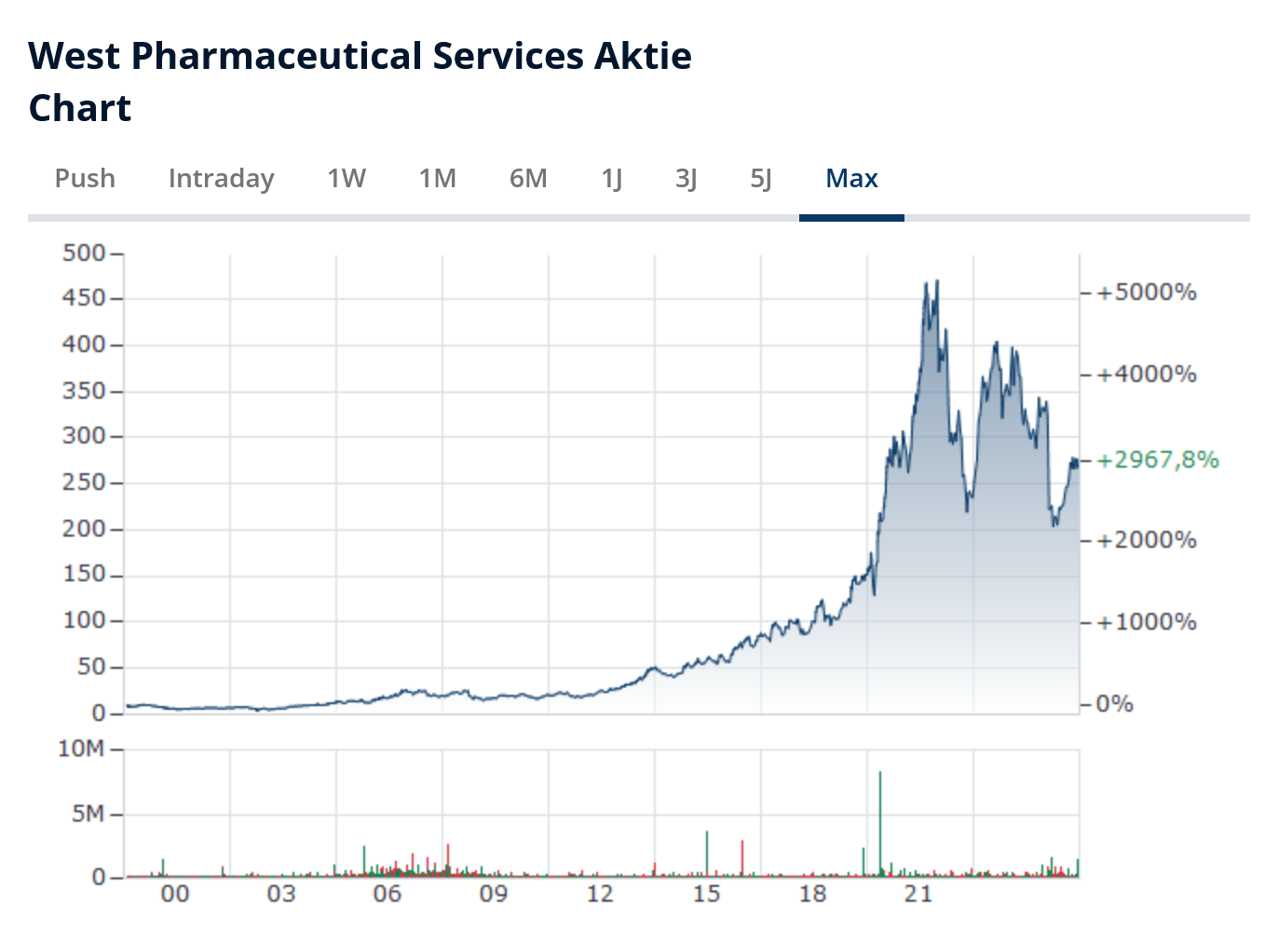 Seite an Seite mit einem der reichsten Menschen investieren? Kein Problem! Wer sich für die Aktie von West Pharmaceutical Services Inc. (ISIN: US9553061055) entscheidet, folgt dem Microsoft-Gründer Bill Gates. Besser gesagt der Bill & Melinda Gates Foundation. Insgesamt 444.615 Anteile an West Pharmaceutical Services, kurz West Pharma, wurden von der Stiftung im vergangenen Jahr zu einem Durchschnittspreis von gut 275 US-Dollar erworben. Seit ihren Tiefs bei rund 200 US-Dollar hat sich die Aktie deutlich erholt und notiert derweil gut 25 Prozent höher. Salopp formuliert fertigt der Pharmariese allerlei Equipment, das zur Aufbewahrung und Verabreichung von Arzneimitteln notwendig ist. Hierzu gehören: