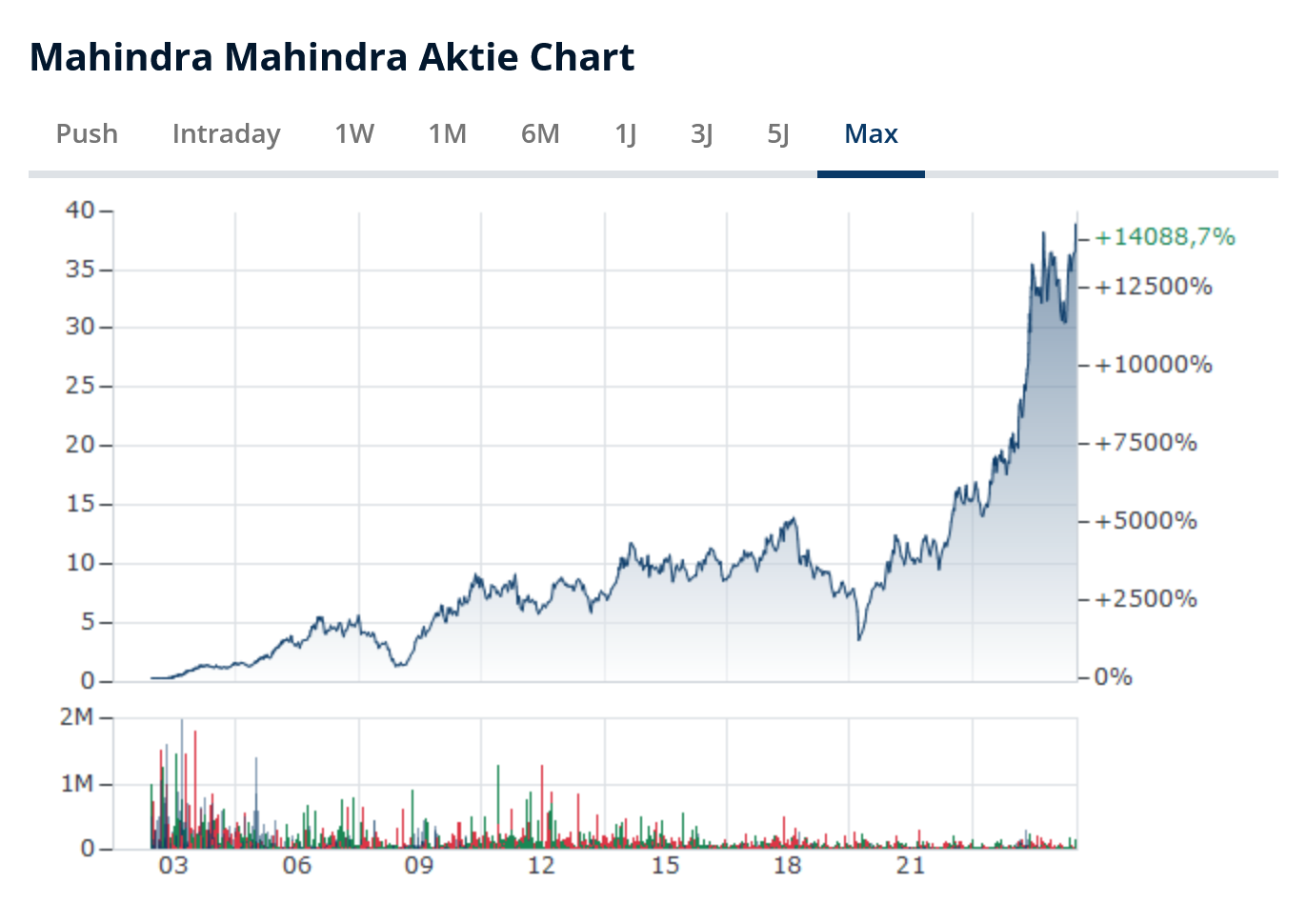 Für wen eignet sich ein Investment in die Mahindra & Mahindra Aktie? Die Mahindra & Mahindra Aktie eignet sich als Beimischung für Aktionäre mit einem breiten Depot und Risikoaffinität. Trotz des langjährigen positiven Charts gilt es, die Entwicklungen dieses Global Players engmaschig zu verfolgen. „Kaufen und liegen lassen“ ist fehl am Platz. Die Chance, sich an einem bis heute nahezu unbekannten Weltkonzern zu beteiligen, der bereits etliche Krisen meistern konnte und einen außergewöhnlichen, umsichtigen Wachstumsweg bestreitet, wiegt die Negativaspekte jedoch auf. Vor allem Personen, die sich explizit in Nischenmärkten engagieren möchten und Zeit und Lust haben, Transformationsprozesse sowie Nachrichten zu verfolgen, dürfen ein Investment wagen